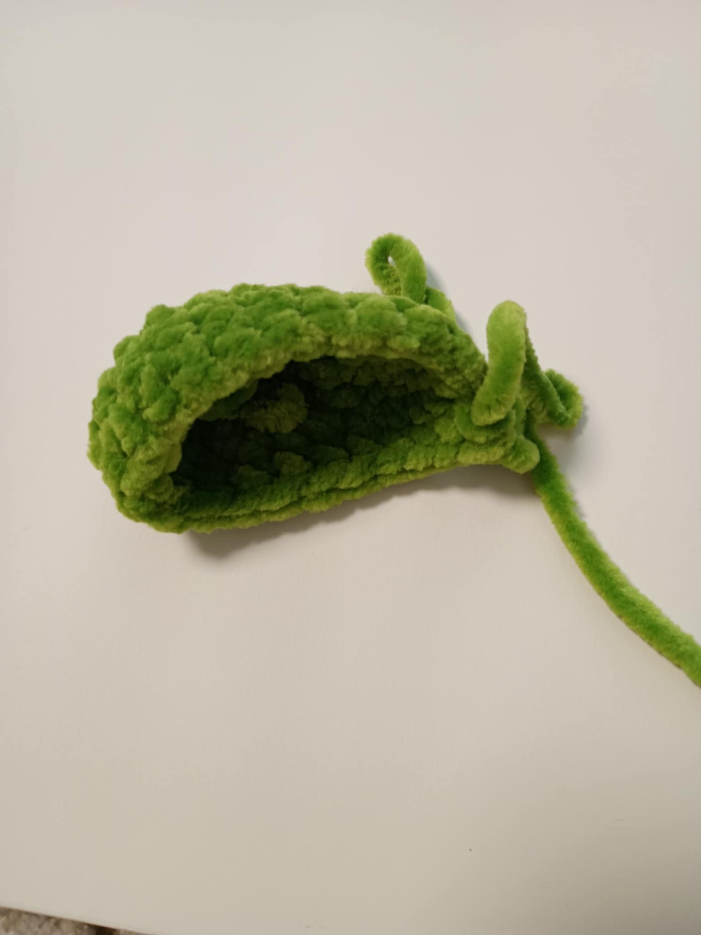 Začneme háčkovať tmavou zelenou vlnou, s háčikom 2,5 mm